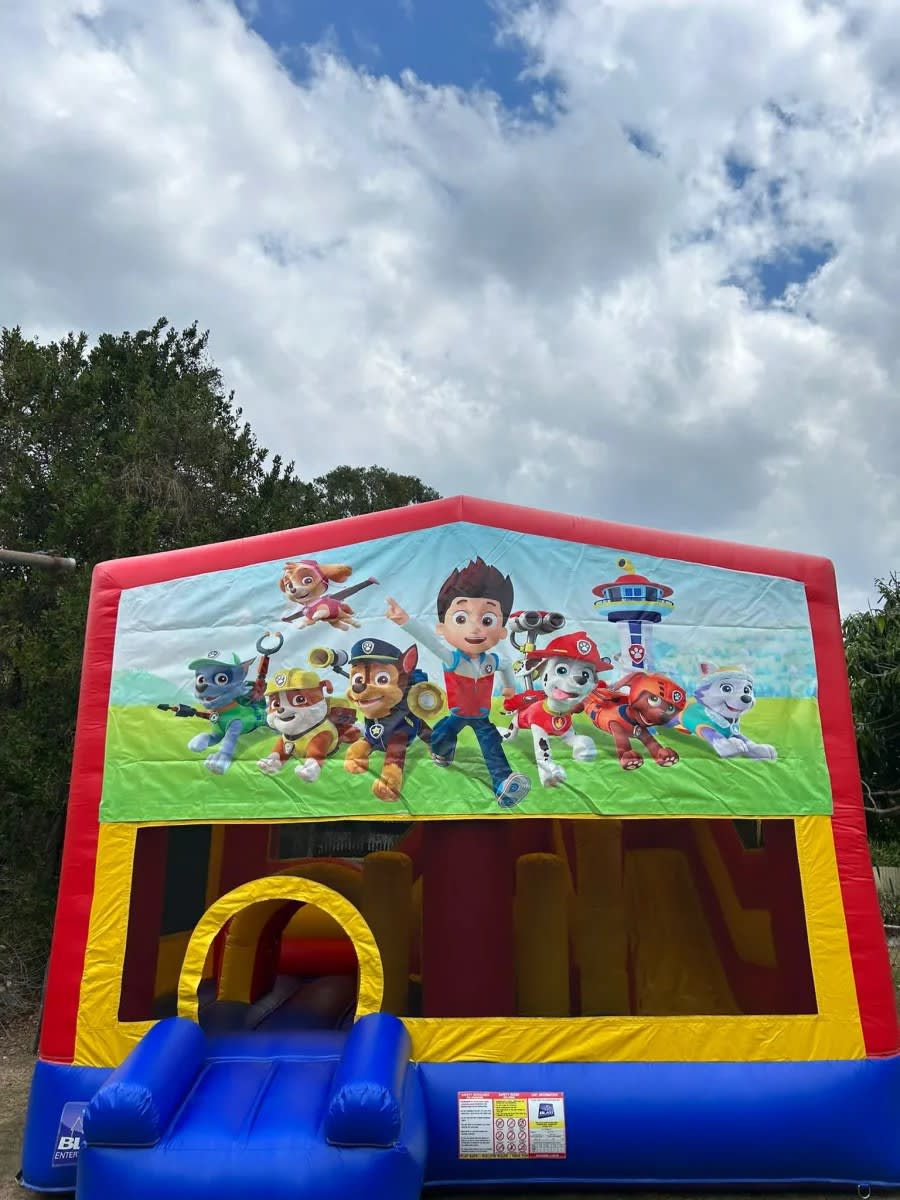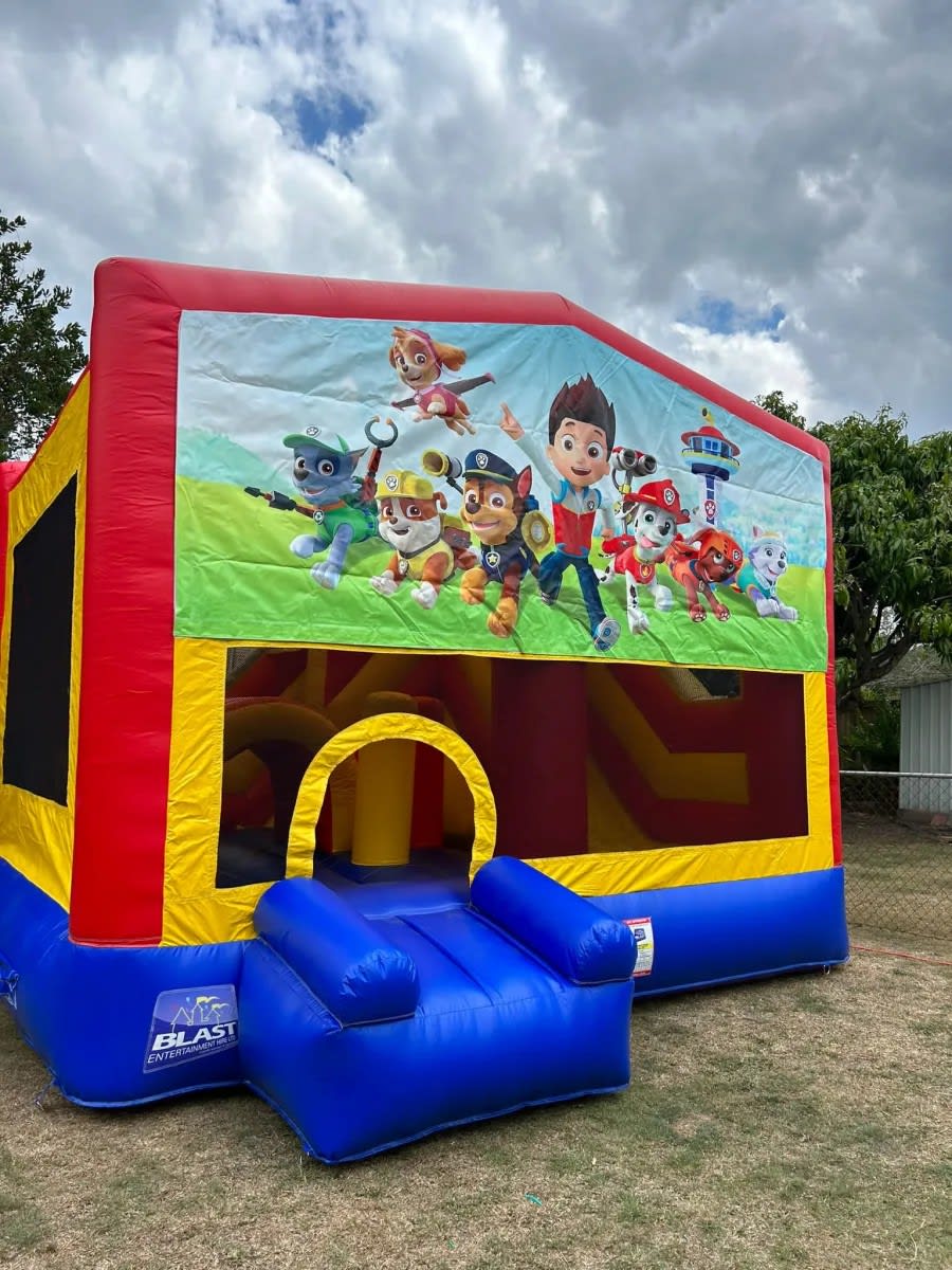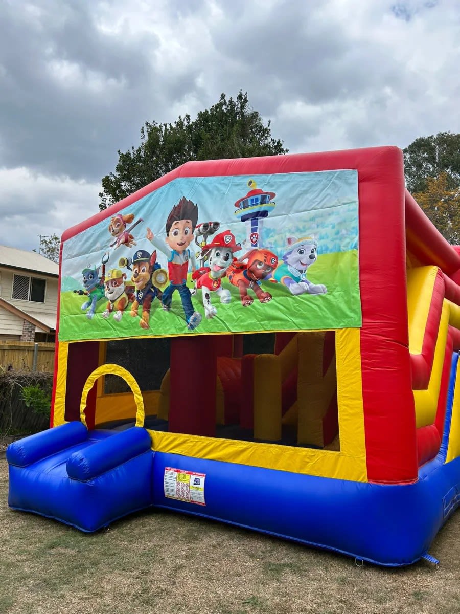 The Extra Large Paw Patrol Jumping Castle with Slide (5m × 5m Obstacle Slide) is big, bright, and built for action. Fully covered for all-weather play, it features a huge bouncing area, an internal slide with climbing ladder, obstacle pillars, and a basketball hoop for non-stop mission fun. A favourite for birthdays, school fetes and community events across the Gold Coast, Tweed Heads and surrounding suburbs. Paw Patrol is used here to describe the event theme only. We are not affiliated with or endorsed by the brand.