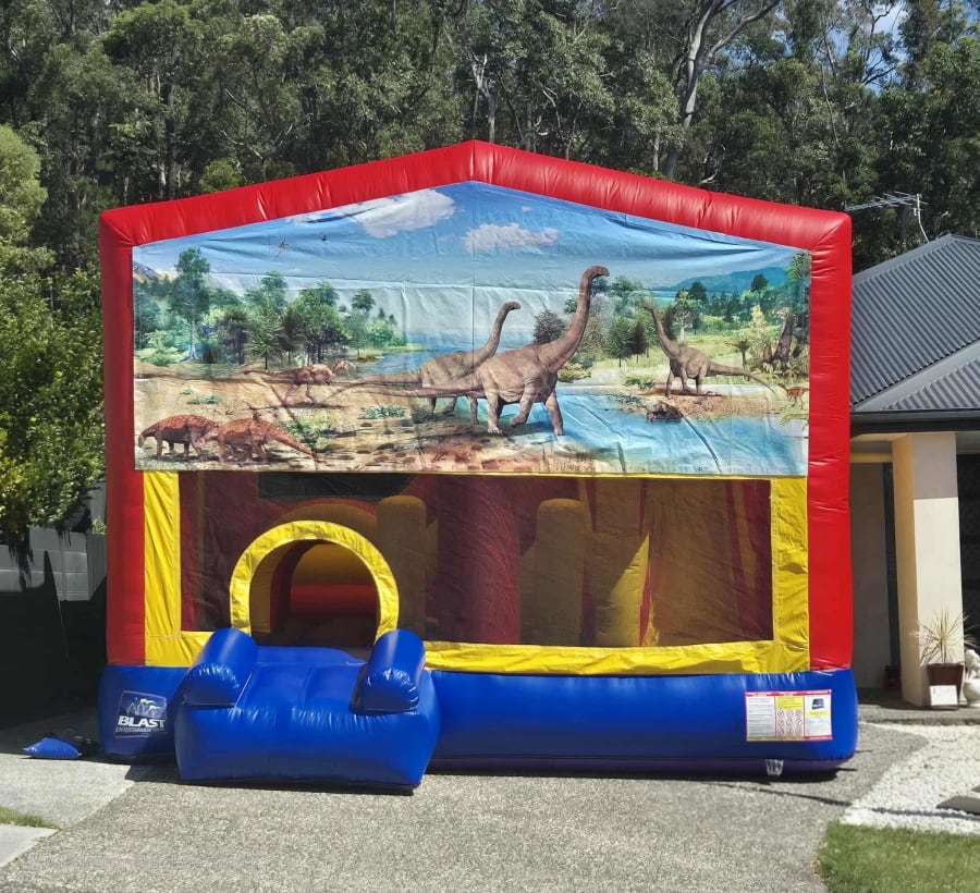 The Extra Large Dinosaur Jumping Castle with Slide (5m × 5m Obstacle Slide) is bigger, bolder, and designed for maximum fun. Fully covered for all-weather play, it combines a huge bouncing area, exciting internal slide, climbing ladder, obstacle pillars, and even a basketball hoop. This dino-themed inflatable is a true crowd-pleaser for birthdays, school fetes and community events across the Gold Coast, Tweed Heads and surrounding suburbs.