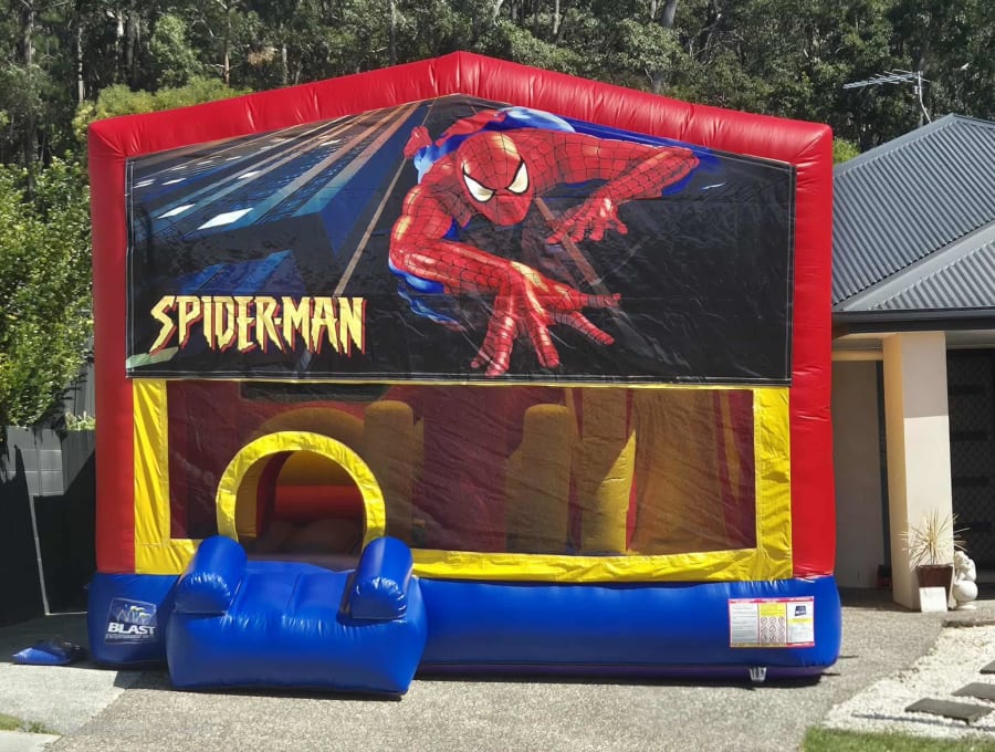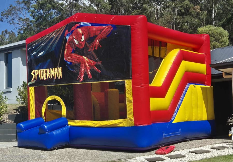 The Spider-Man Extra Large Jumping Castle Hire is a showstopper across the Gold Coast and Tweed Heads. Measuring 5m × 5m, this inflatable features a spacious bouncing area, exciting internal slide, climbing ladder, obstacle challenges, and a built-in basketball hoop — all under a fully covered roof. Rain or shine, it keeps kids cool, safe, and entertained for hours at birthday parties, school fetes, and community events.