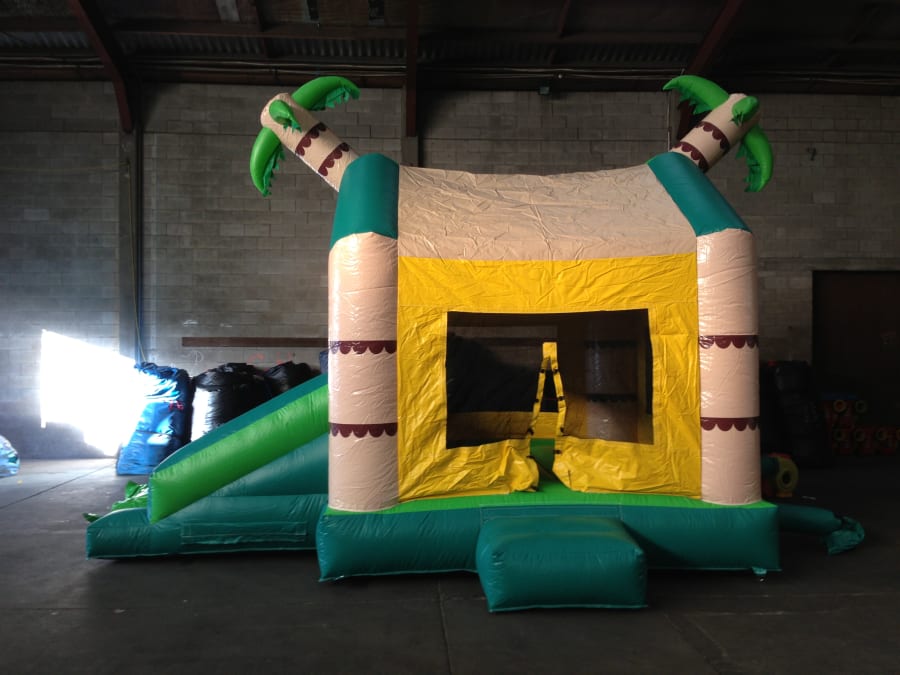 Bounce into the wild with a jungle-themed inflatable packed with colour, adventure & a slide!