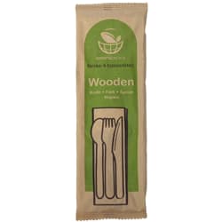 Make your party setup faster, cleaner and more convenient with our Disposable Wooden Cutlery Pack. Each order includes 100 fully prepacked cutlery sets. Every set comes individually wrapped inside a paper bag and contains: 1 wooden fork, 1 wooden knife, 1 wooden spoon and 1 napkin. No sorting, no handling, no mixing cutlery – simply place the packs on your food table and you’re ready to go. These biodegradable wooden utensils are sturdy, smooth, food-safe and perfect for events, parties, community gatherings and catering tables.