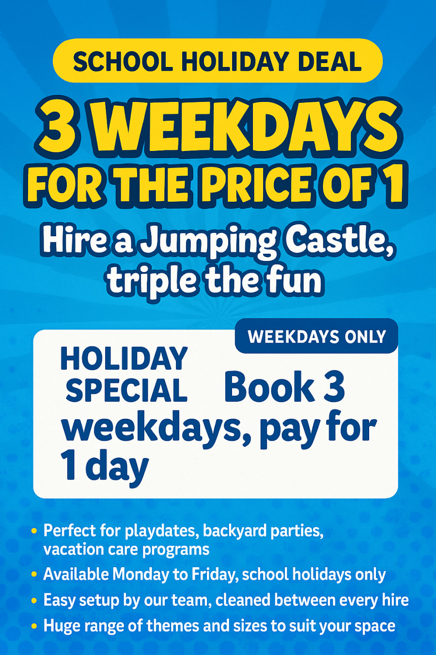 Valid Monday–Friday only, during designated Queensland school holiday dates. Not available on Saturdays or Sundays. Subject to availability; standard delivery fees may apply. Special applies to eligible products only.